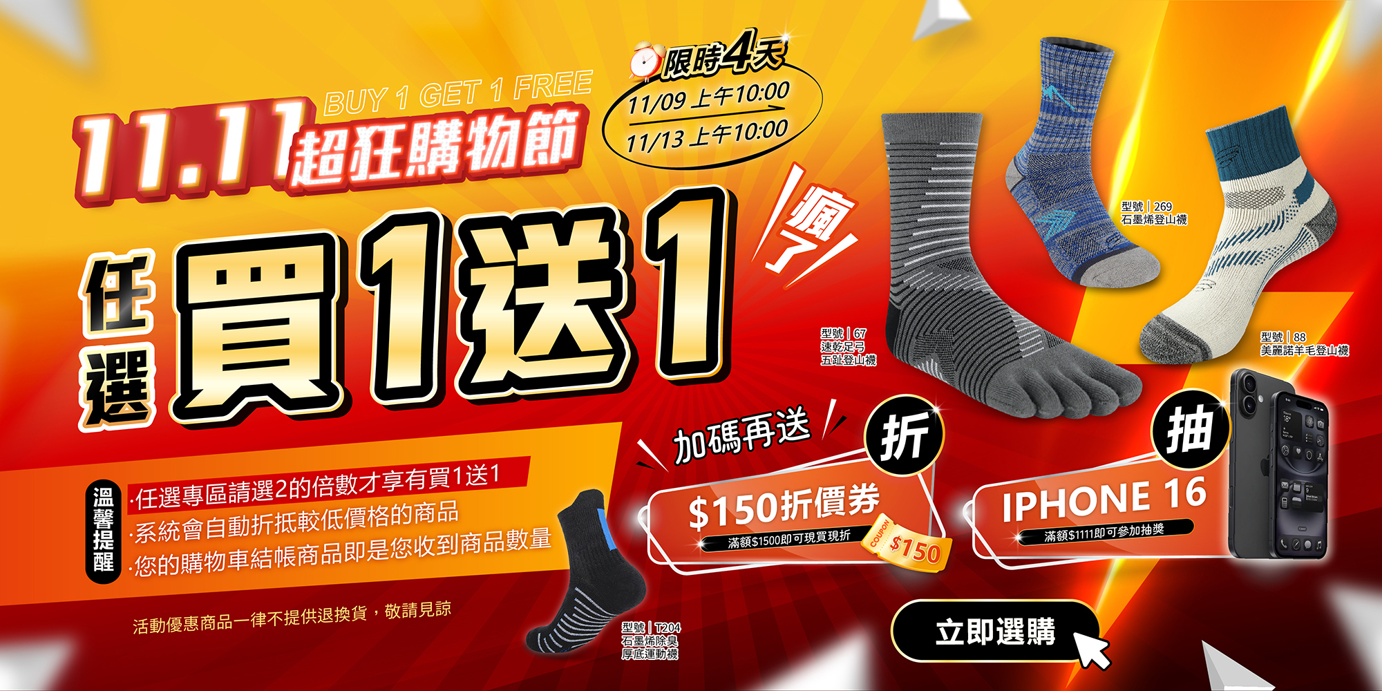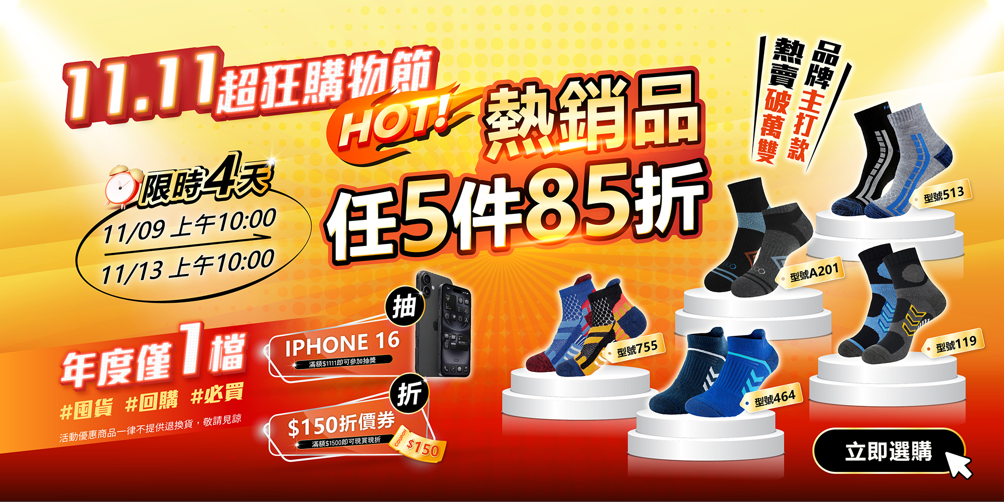 雙11加碼🔥滿$1111現折$111🚩滿額650免運👉滿300再多送一雙!