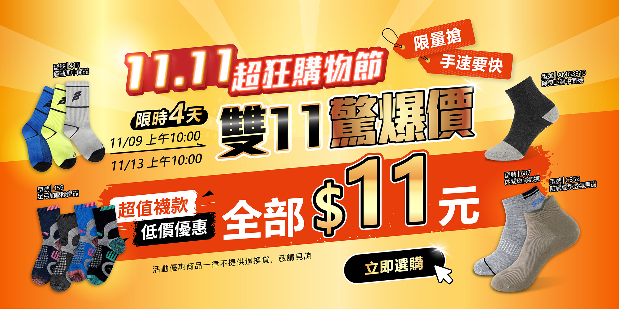 雙11加碼🔥滿$1111現折$111🚩滿額650免運👉滿300再多送一雙!