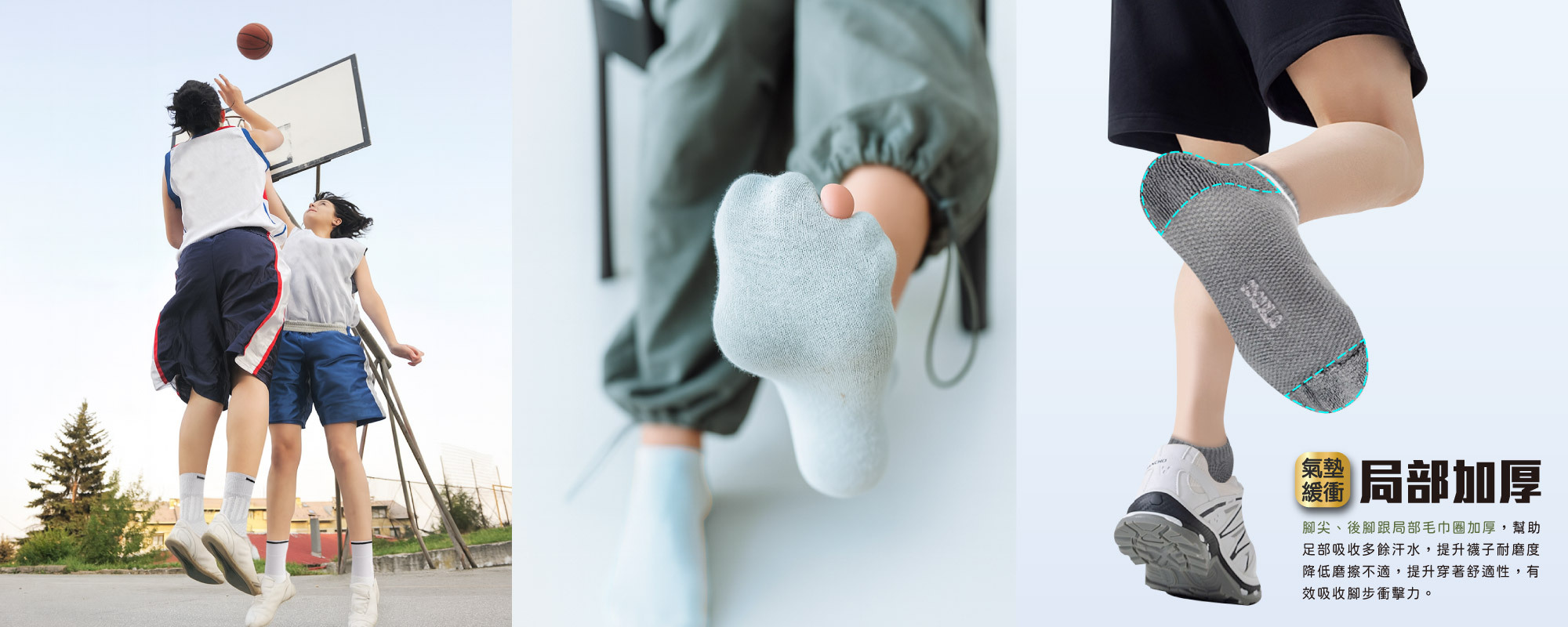 總結來說,具透氣網設計的薄襪適合輕度運動或日常行走;如果你要進行長時間運動、打球或登山,還是建議選擇有加厚保護設計的運動襪,才能兼顧舒適與耐用性!
