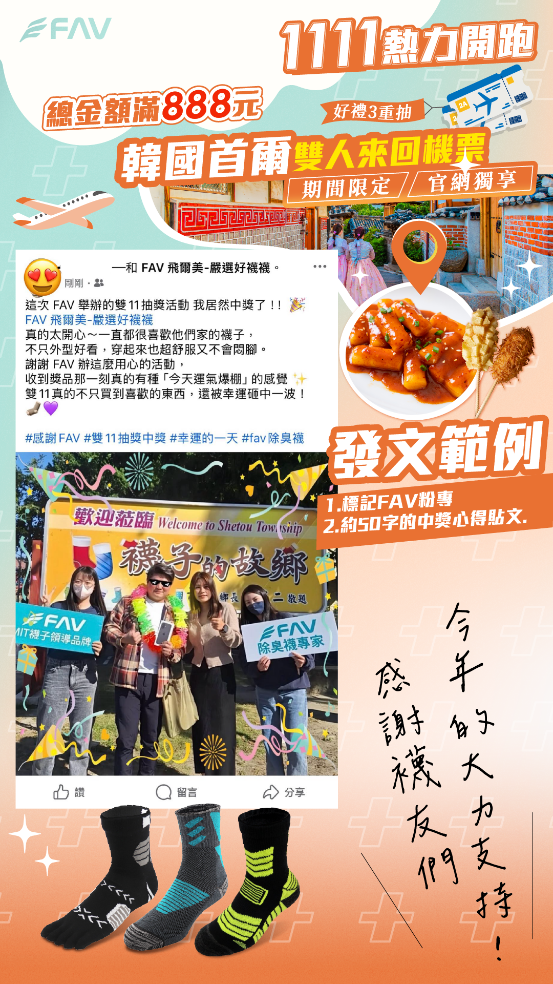 雙11週限定🚩11/9-11/11全館消費滿$888抽首爾雙人來回機票|抽獎資格|詳情請看活動資訊頁