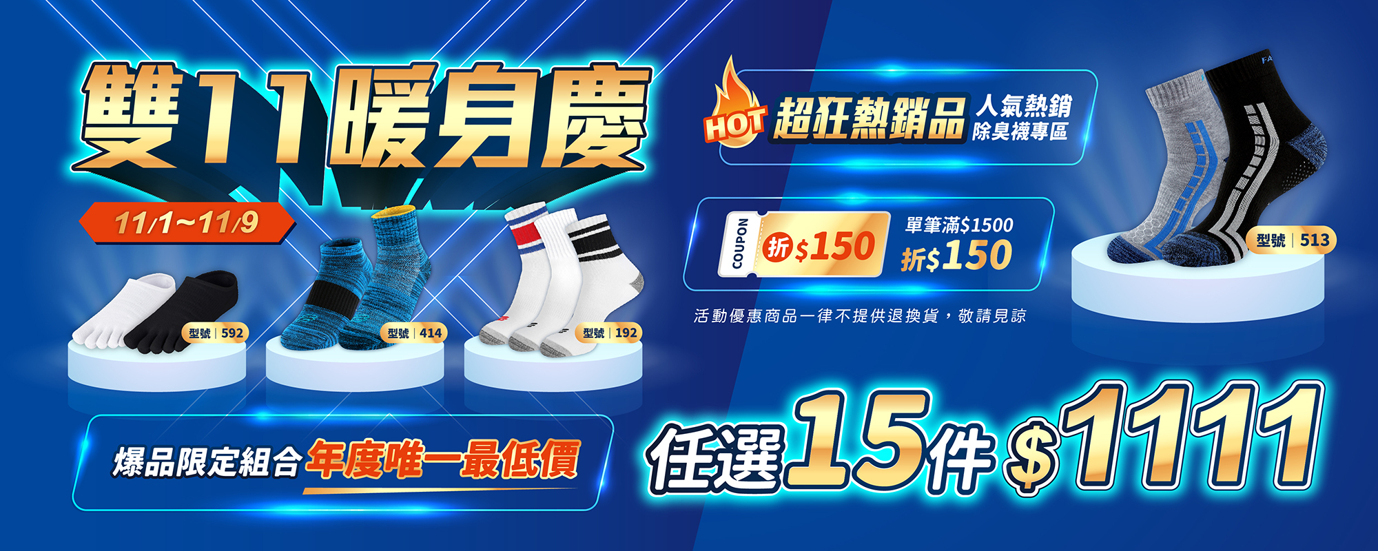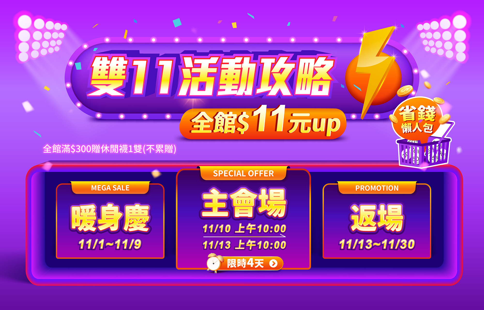 雙11加碼🔥滿$1111現折$111🚩滿額650免運👉滿300再多送一雙!