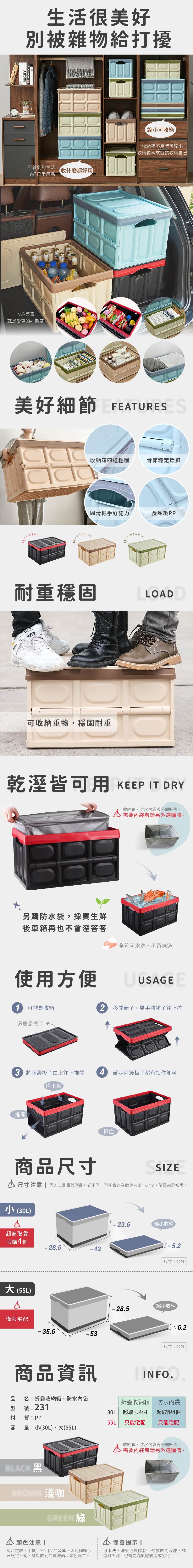 不用時可摺疊收起,全箱可水洗風乾,不怕異味殘留,另添購專屬防水內袋,出門採買生鮮蔬果,不怕弄濕後車廂。