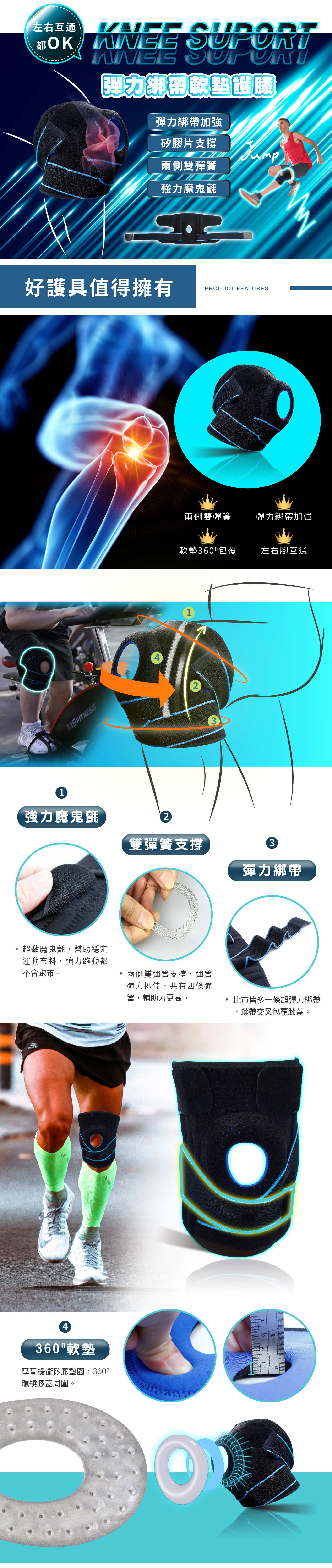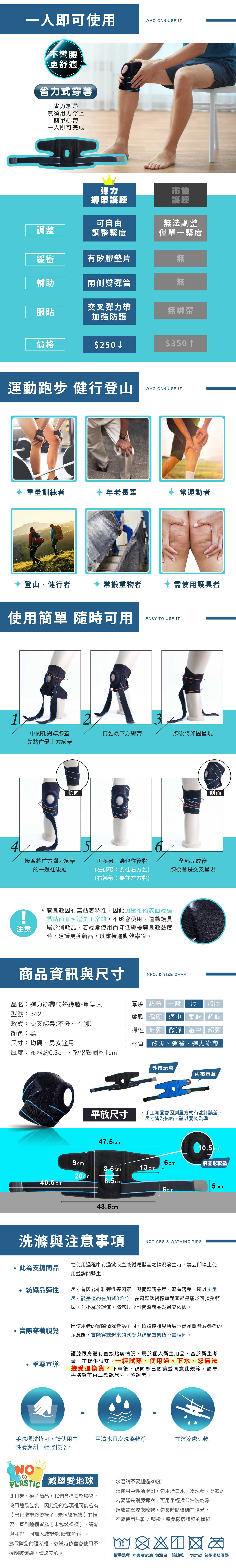 FAV 可調式交叉綁帶 軟墊護膝(單支) - 邊側雙彈簧 運動護具 型號:342 343
