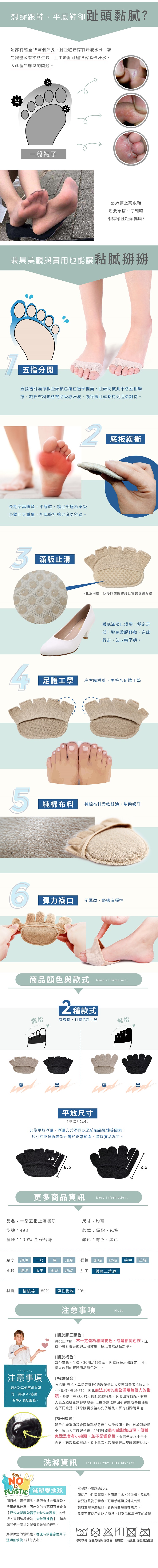 FAV 隱形五指止滑襪墊(1雙) - MIT台灣製半掌隱形五趾襪墊 型號:498